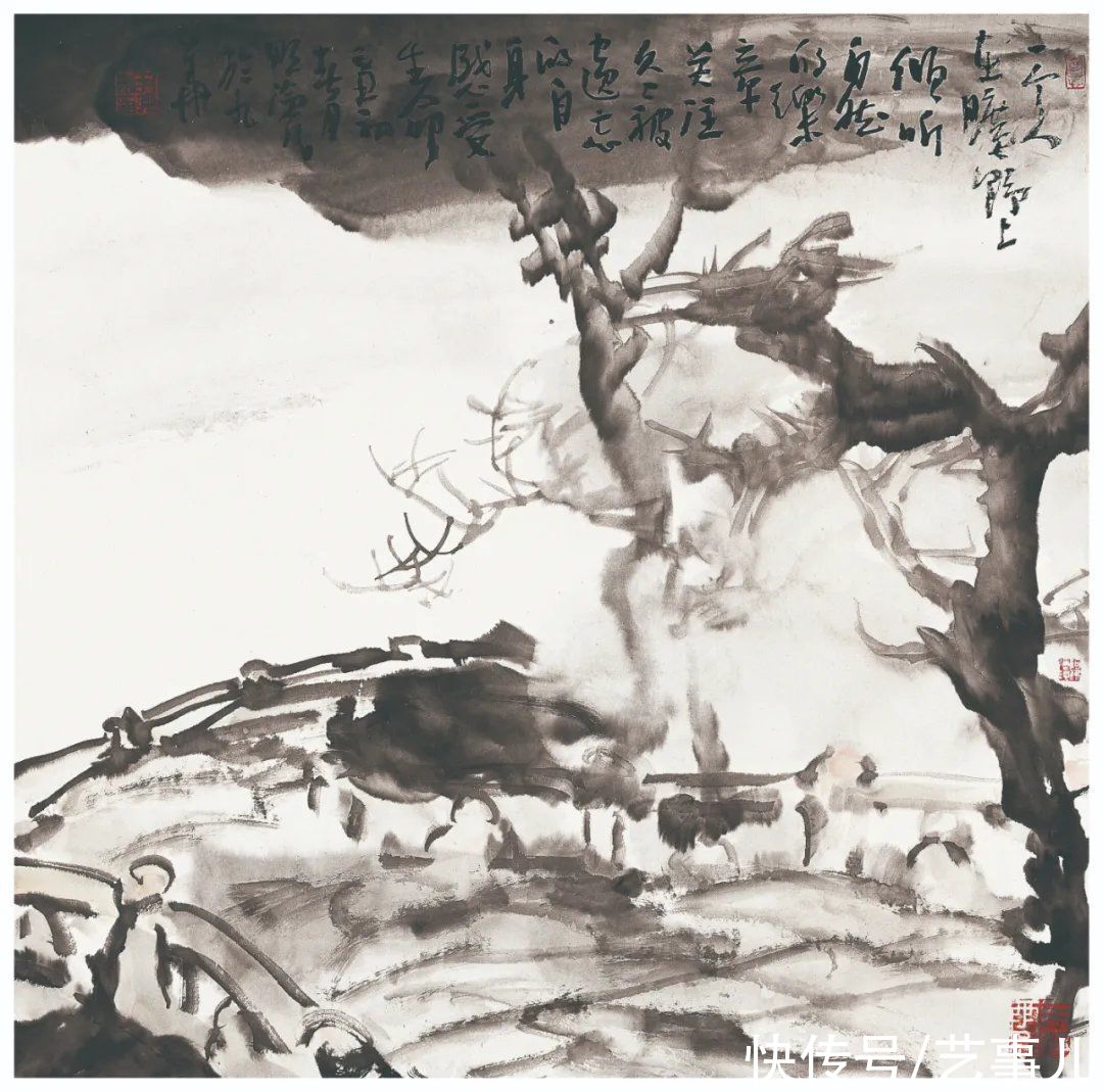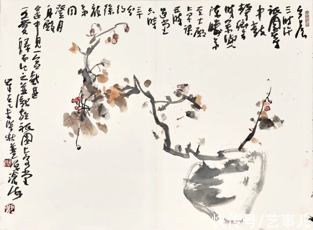 唐代张璪《绘境》有云:“外师造化,中得心源。”中国的山水画之所以不称为风景画,花鸟画之所以不称为静物画,根本原因就在于它们是“心源”与“造化”交织融合的主客一体产物。即便是在对景对物的写生作品中,这一根本性质也同样贯穿期间。尹沧海教授的写生作品或记录着他所踏遍的万水千山,或记录着他所偶遇的一花一物。在这些作品中,观者能鲜明感受到,画家的思绪是如何被眼前的景物所触动,又如何将情思透过物象及其笔墨造型传达出来,正应了南朝刘勰《文心雕龙》之语:“登山则情满于山,观海则情溢于海”。